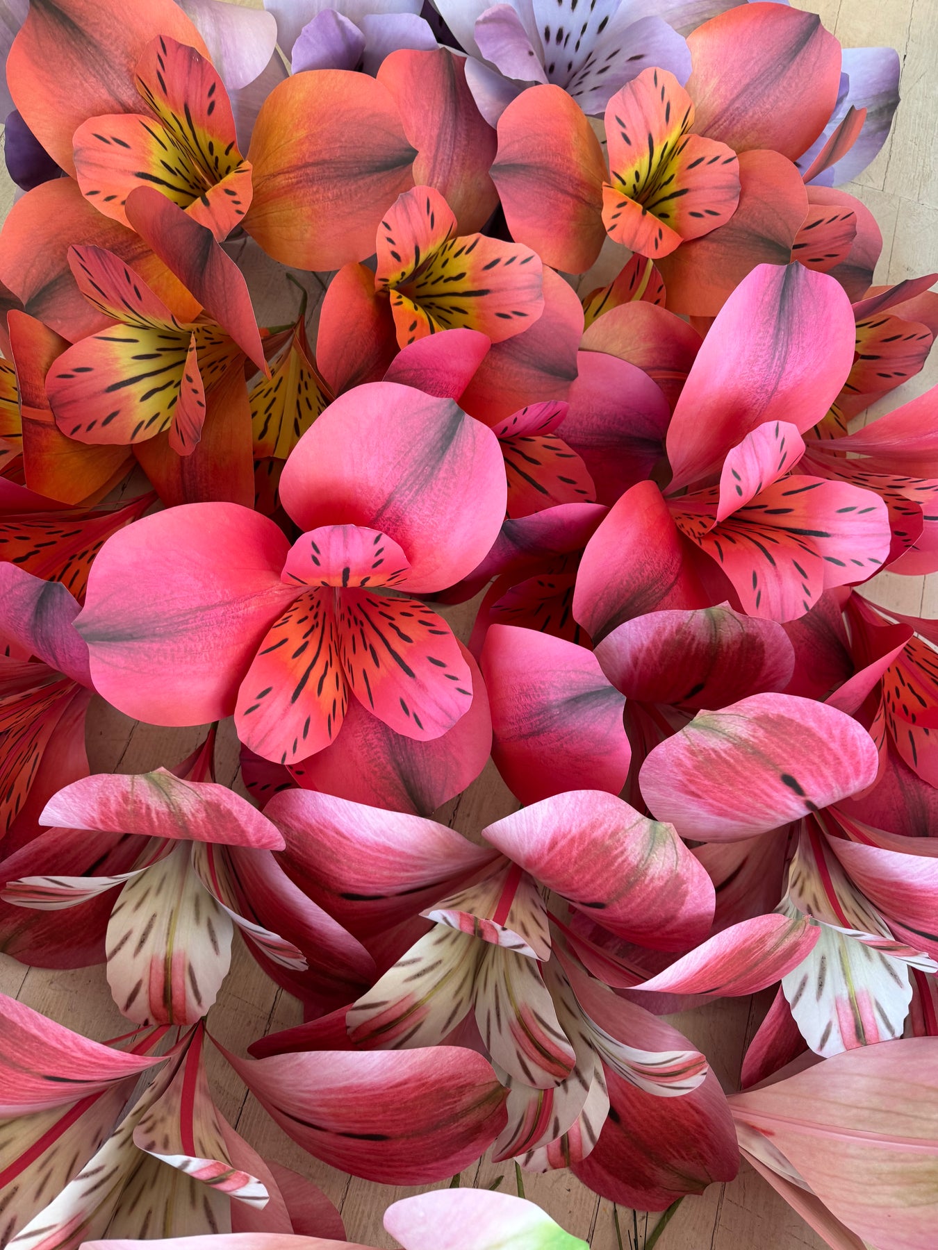 A handcrafted paper flower arrangement inspired by alstroemeria blooms. Elegant, long-lasting, and designed to add refined floral beauty to events, interiors, and decorative displays.